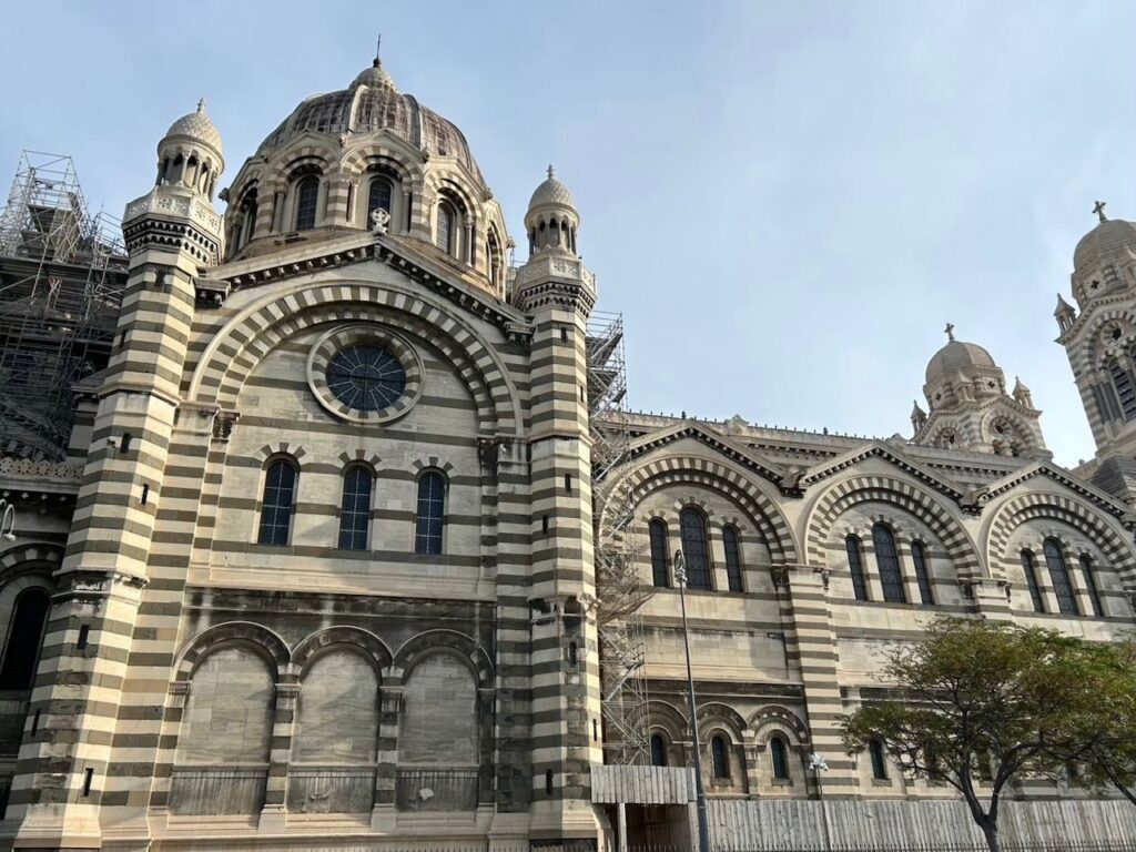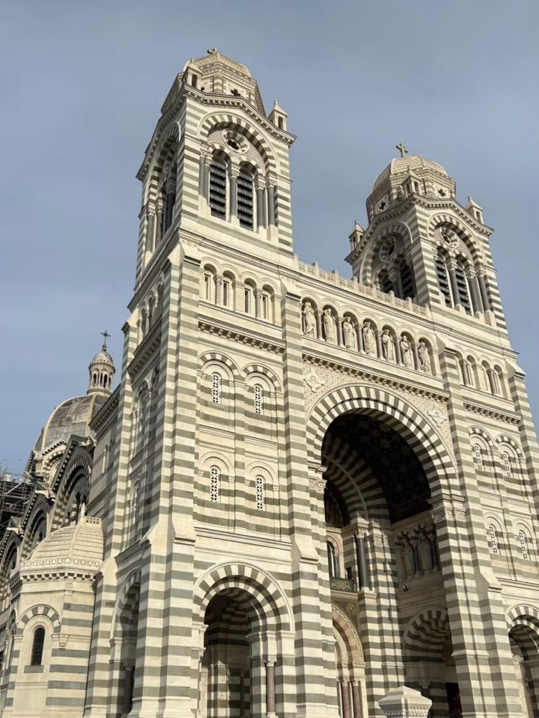 重厚なネオビザンチン様式が特徴的なマルセイユ大聖堂。