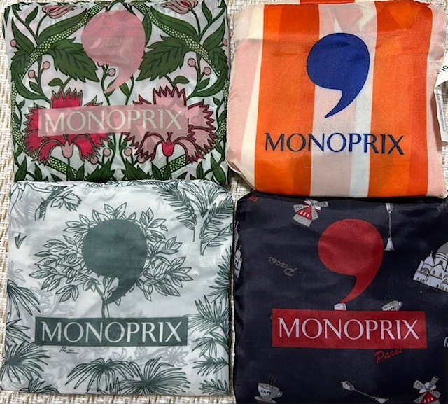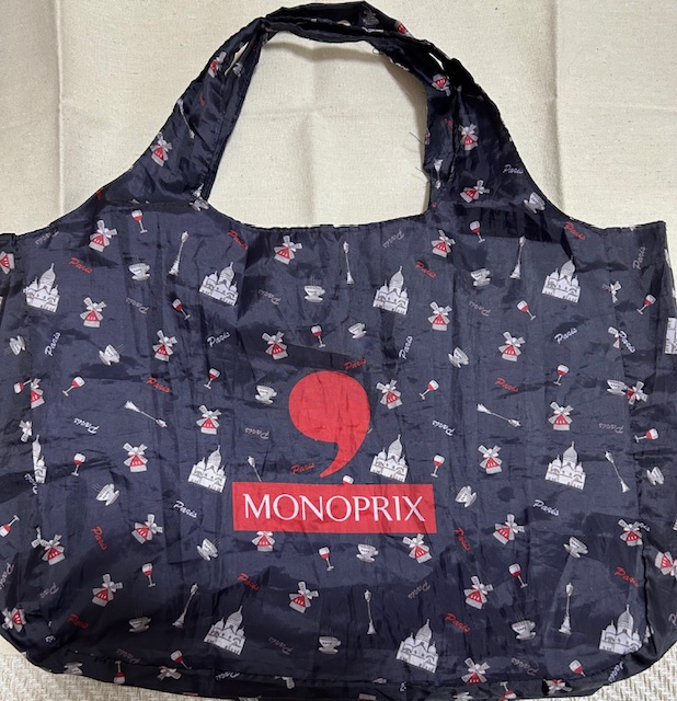 スーパー「モノプリックス」のエコバッグ。柄がおしゃれで、2~3ユーロくらいで購入できます。